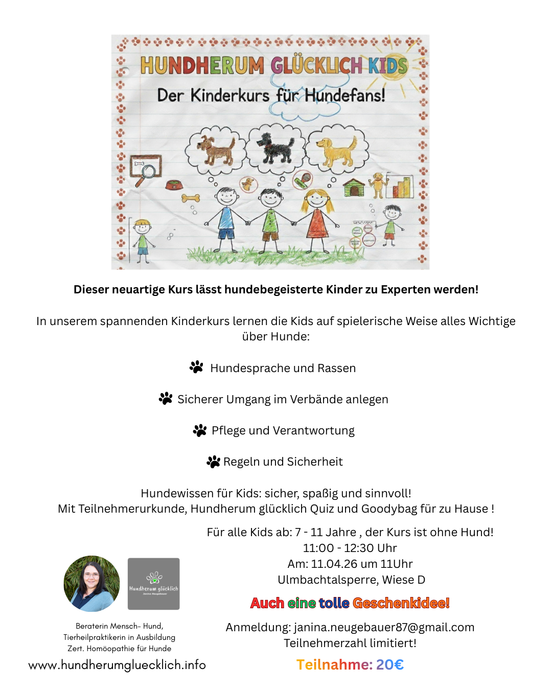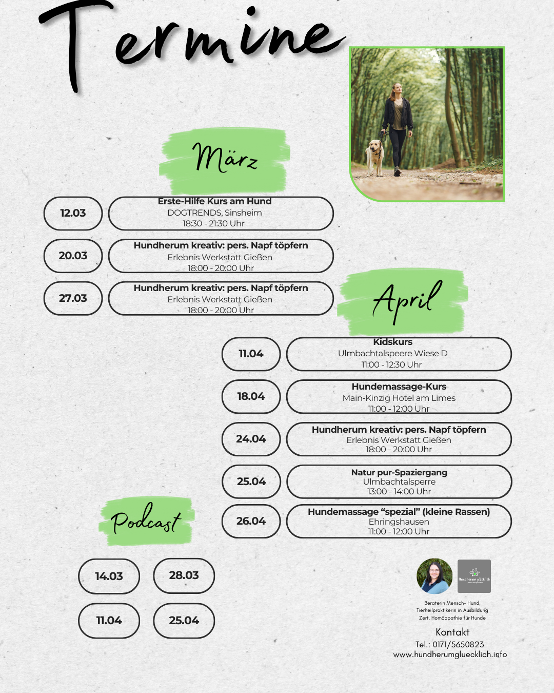 Alle neuen Angebote, Termine und Projekte findest du auf der Website und auf den sozialen Netzwerken von Hundherum glücklich. Folge uns dort gerne, um nichts zu verpassen!