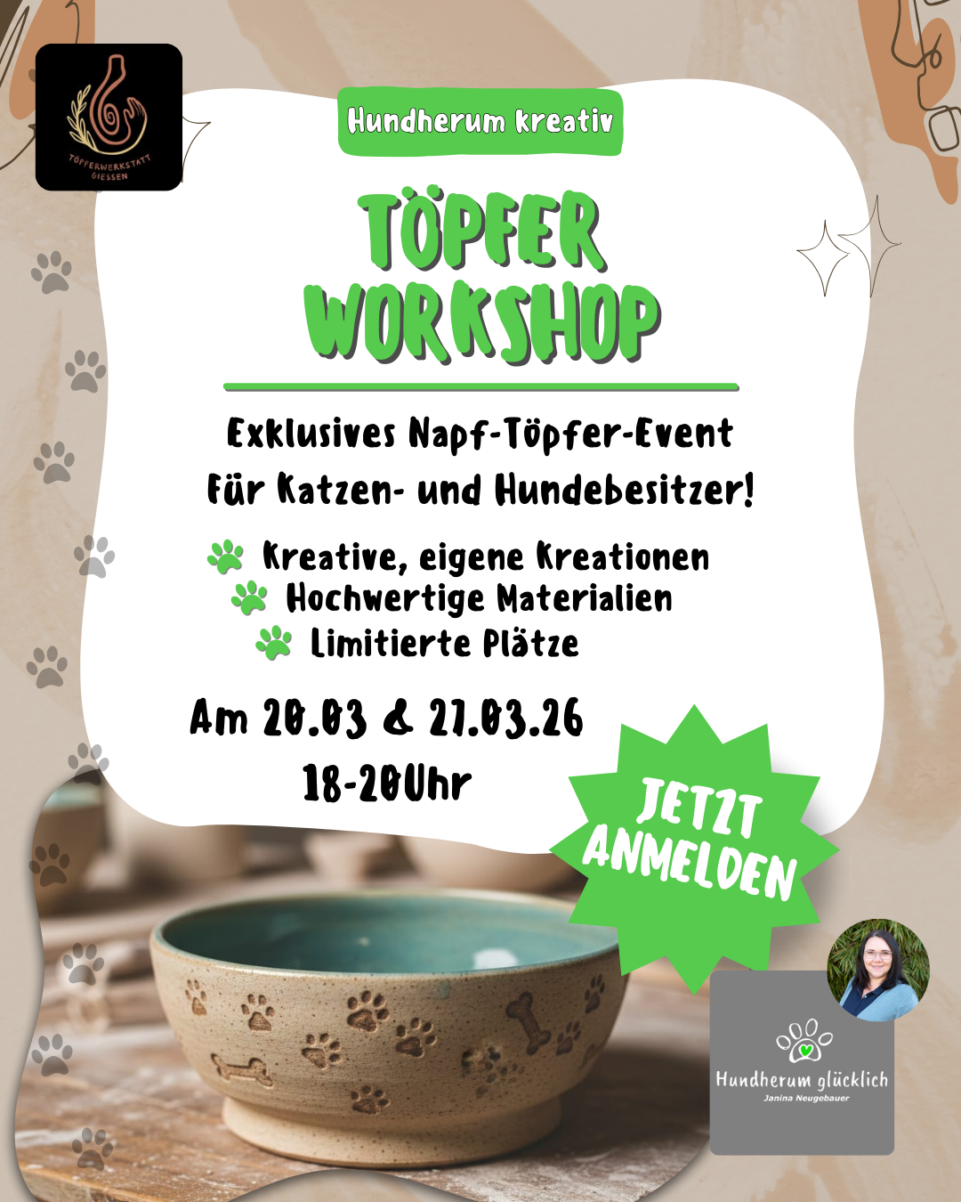 🐾 Ton in Ton mit deinem Vierbeiner: Kreativ-Workshop für Fressnäpfe! 🐾