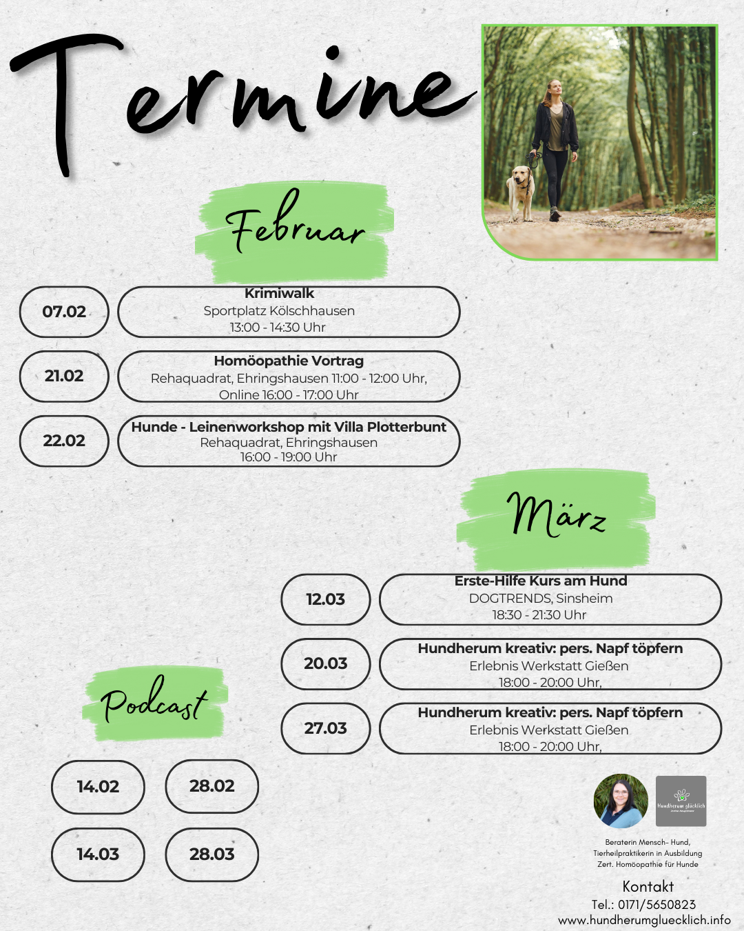 Alle neuen Angebote, Termine und Projekte findest du auf der Website und auf den sozialen Netzwerken von Hundherum glücklich. Folge uns dort gerne, um nichts zu verpassen!
